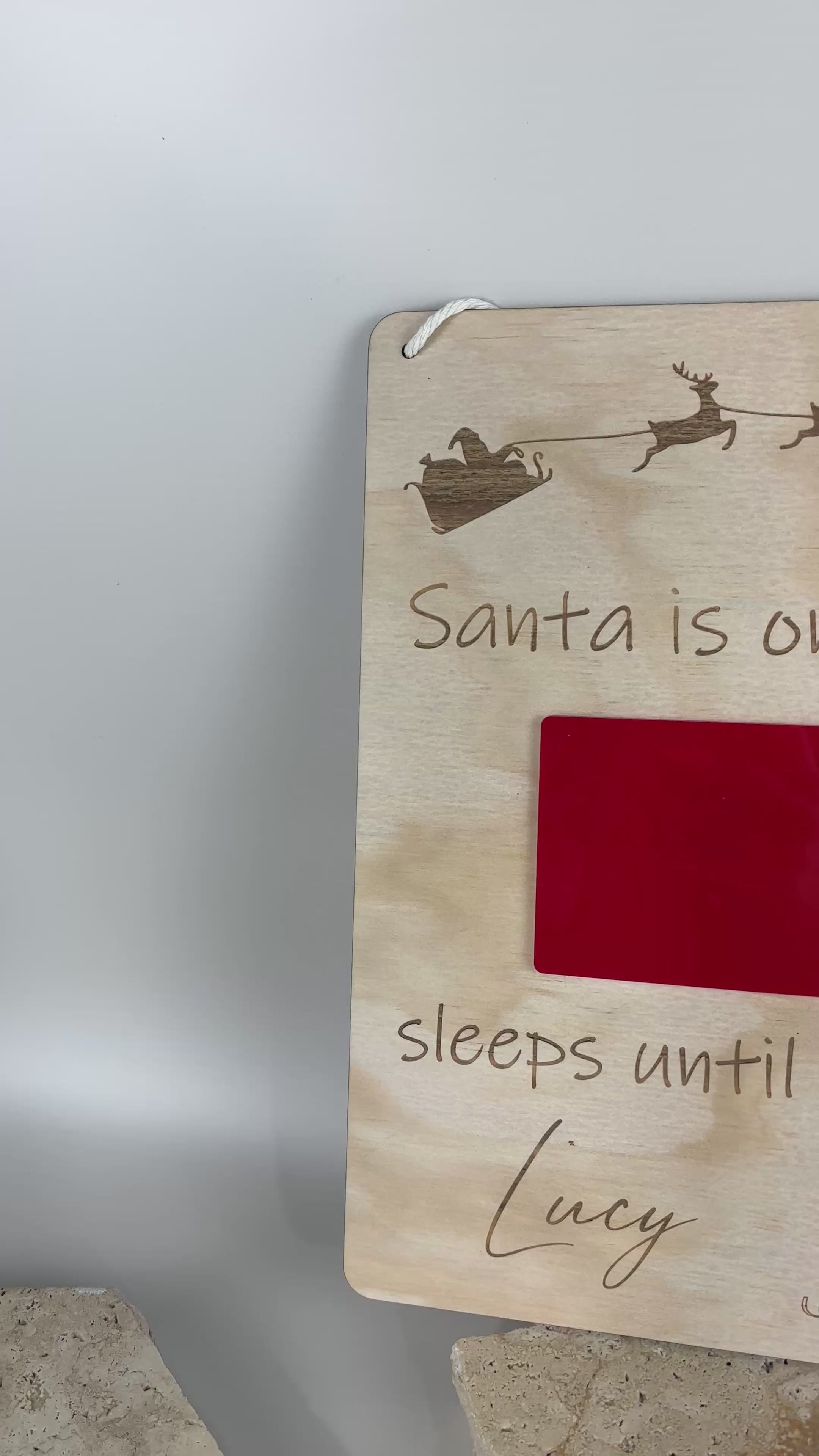 Build excitement for the big day with our Personalised "Santa is on his way" countdown plaque! This charming wooden plaque is the perfect way to count down the sleeps until Santa visits your home. Featuring a delightful silhouette of Santa and his reindeer in flight, the plaque includes a chalkboard section where you can update the number of sleeps left until Christmas. Add a personal touch with your family’s names beautifully engraved at the bottom, making it a cherished holiday keepsake. Hang it up in your living room or child’s bedroom to create a fun and interactive tradition that everyone will look forward to each year.